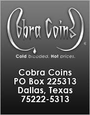 For general information regarding: Cobra Coins, technical assistance, pages loading, Privacy Policy, Disclaimer, and Terms of Use, contact David at: webmaster@cobracoins.com