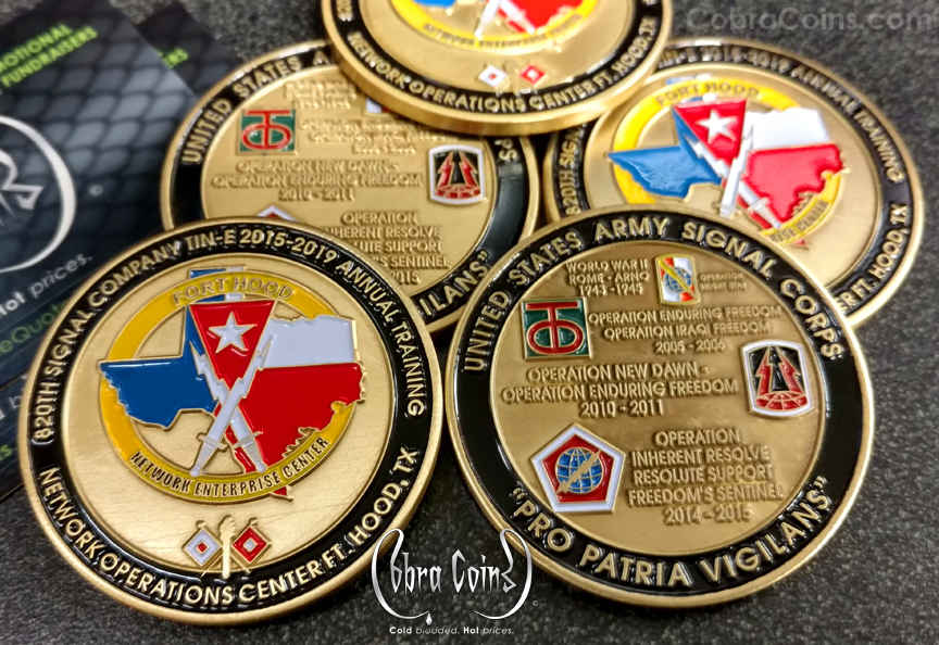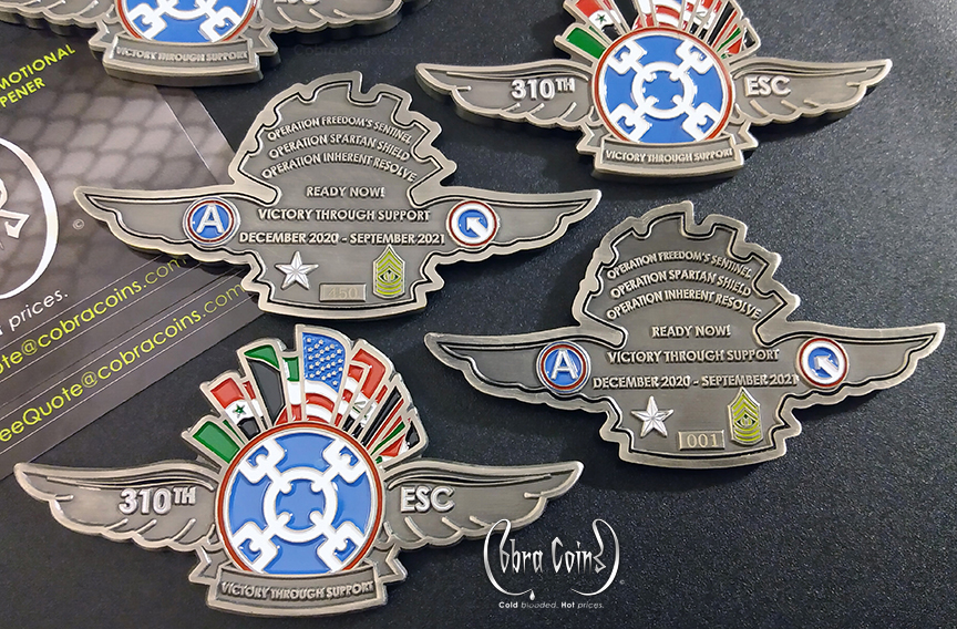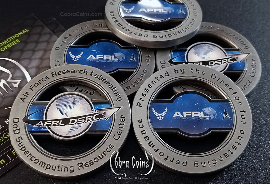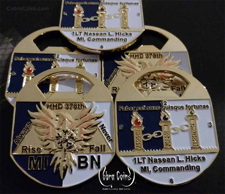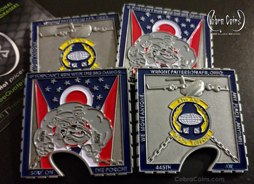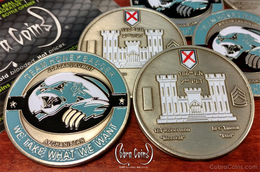 Check out SOME of our completed coins! Your feedback said you wanted HIGHER quality photos and we’ve delivered – AGAIN!! Click any thumbnail for a higher resolution. Feel free to save our photos: when you contact us (freequote@cobracoins.com) we’ll know exactly what you want on your custom coins.